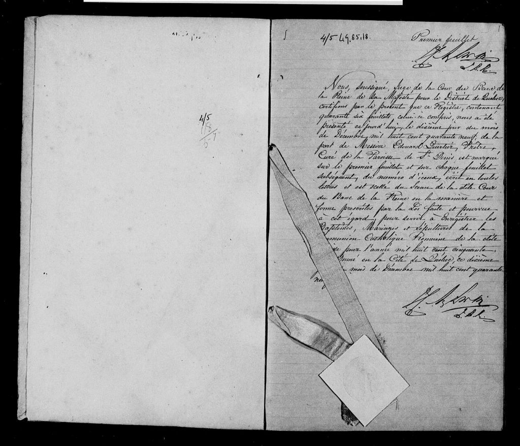 Saint-Denis, 1841-1921, Archives nationales à Rimouski, Fonds Cour supérieure. District judiciaire de Kamouraska. État civil, (01R,CE104,S15).