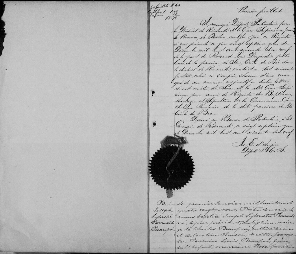 Sainte-Cécile-du-Bic, 1850-1921, Archives nationales à Rimouski, Fonds Cour supérieure. District judiciaire de Rimouski. État civil, (01R,CE101,S11).