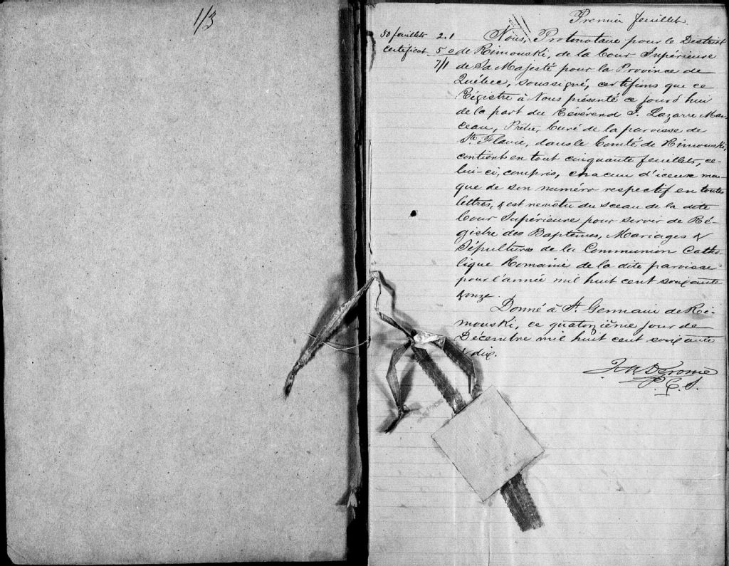 Sainte-Flavie, 1850-1921, Archives nationales à Rimouski, Fonds Cour supérieure. District judiciaire de Rimouski. État civil, (01R,CE101,S12).