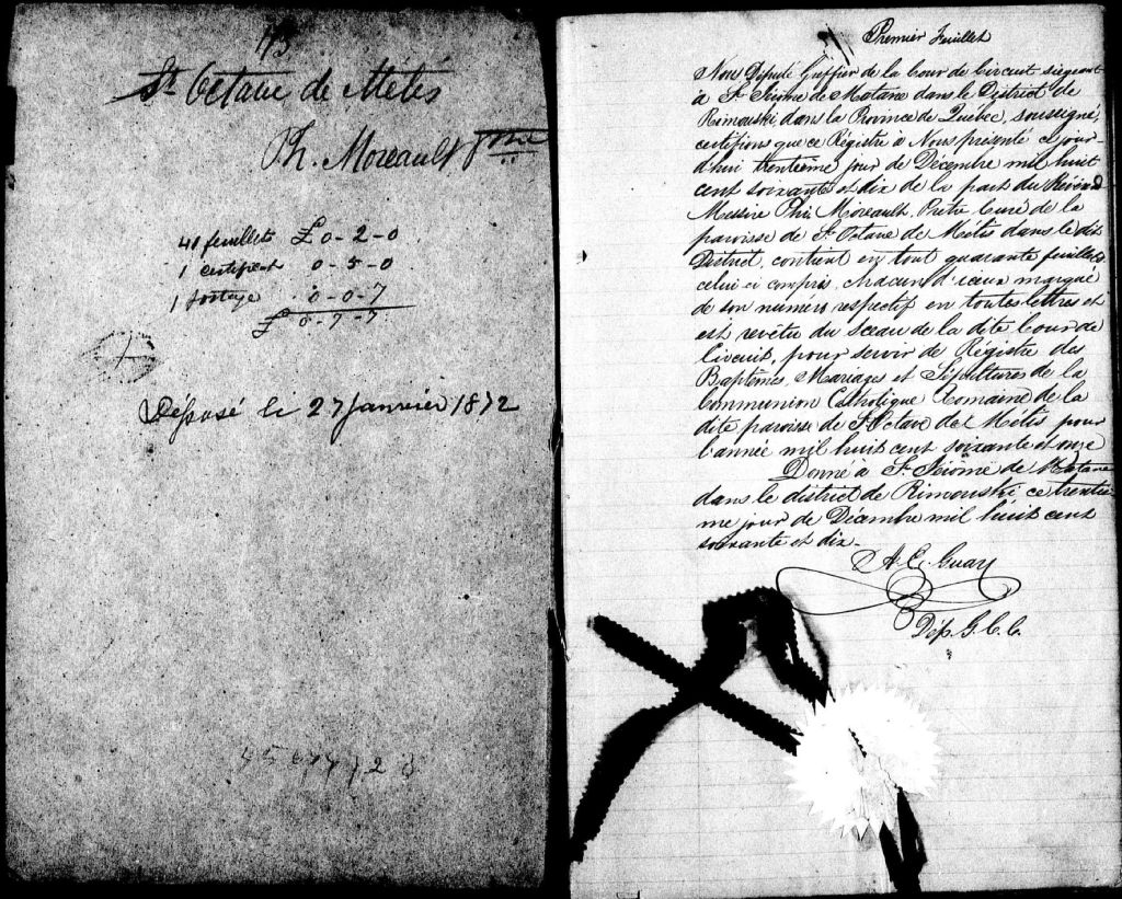 Saint-Octave-de-Métis, 1855-1921, Archives nationales à Rimouski, Fonds Cour supérieure. District judiciaire de Rimouski. État civil, (01R,CE101,S20).