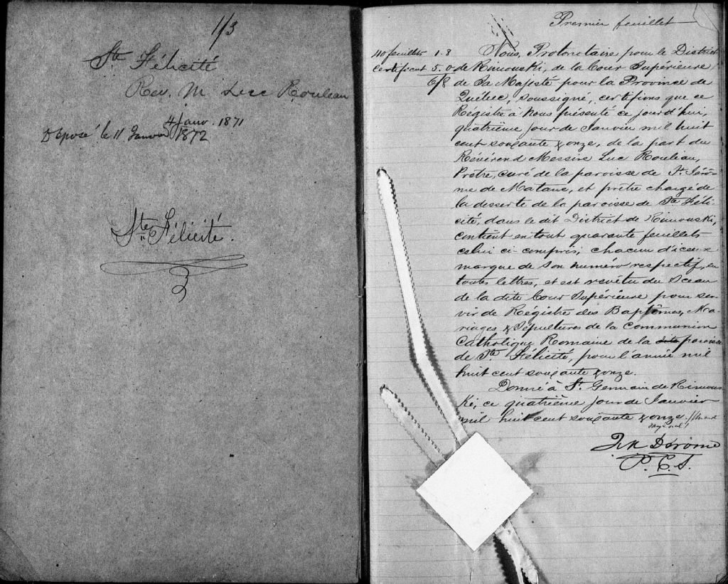Sainte-Félicité, 1864-1921, Archives nationales à Rimouski, Fonds Cour supérieure. District judiciaire de Rimouski. État civil, (01R,CE101,S22).