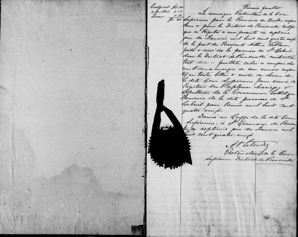 Saint-Gabriel, 1873-1921, Archives nationales à Rimouski, Fonds Cour supérieure. District judiciaire de Rimouski. État civil, (01R,CE101,S5).