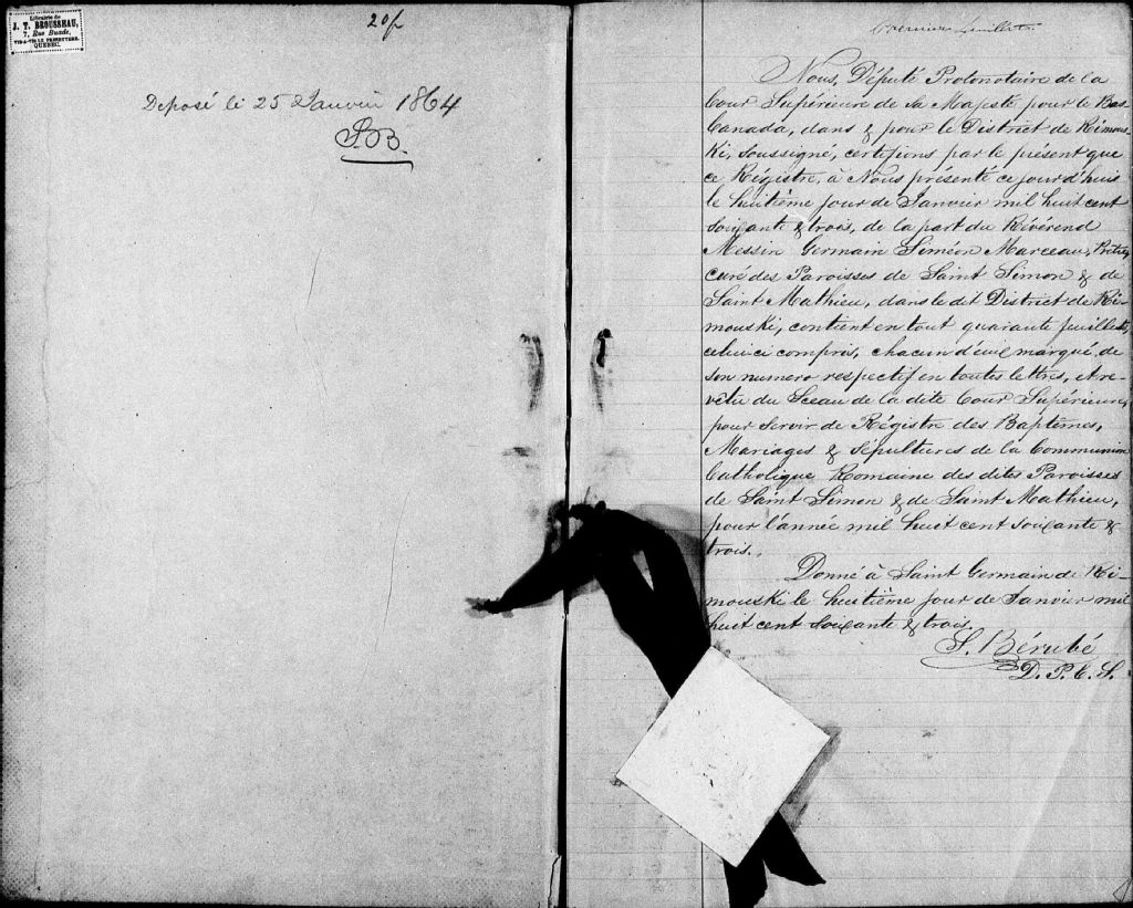 Saint-Simon-de-Rimouski, 1836-1921, Archives nationales à Rimouski, Fonds Cour supérieure. District judiciaire de Rimouski. État civil, (01R,CE101,S8).