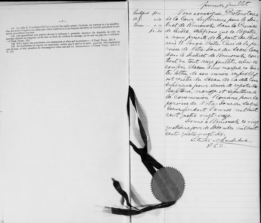 Notre-Dame-du-Sacré-Coeur, 1875-1921, Archives nationales à Rimouski, Fonds Cour supérieure. District judiciaire de Rimouski. État civil, (01R,CE101,S1).