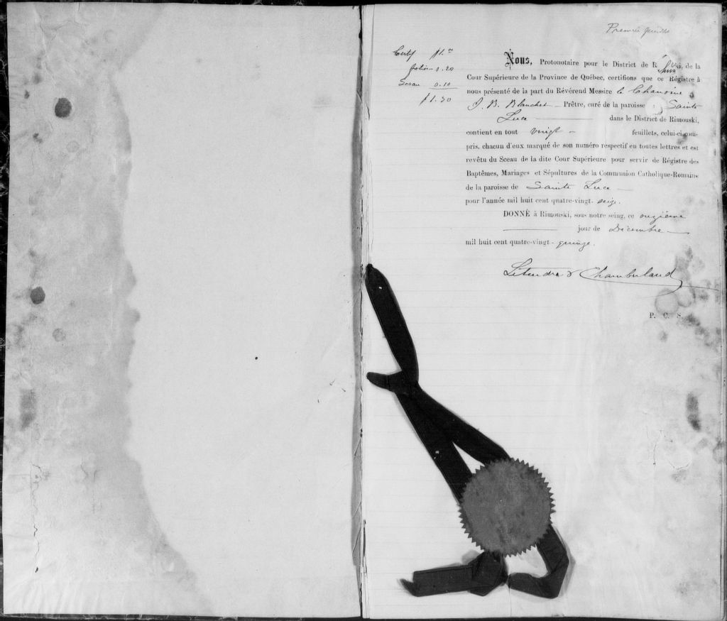 Sainte-Luce, 1842-1921, Archives nationales à Rimouski, Fonds Cour supérieure. District judiciaire de Rimouski. État civil, (01R,CE101,S13).