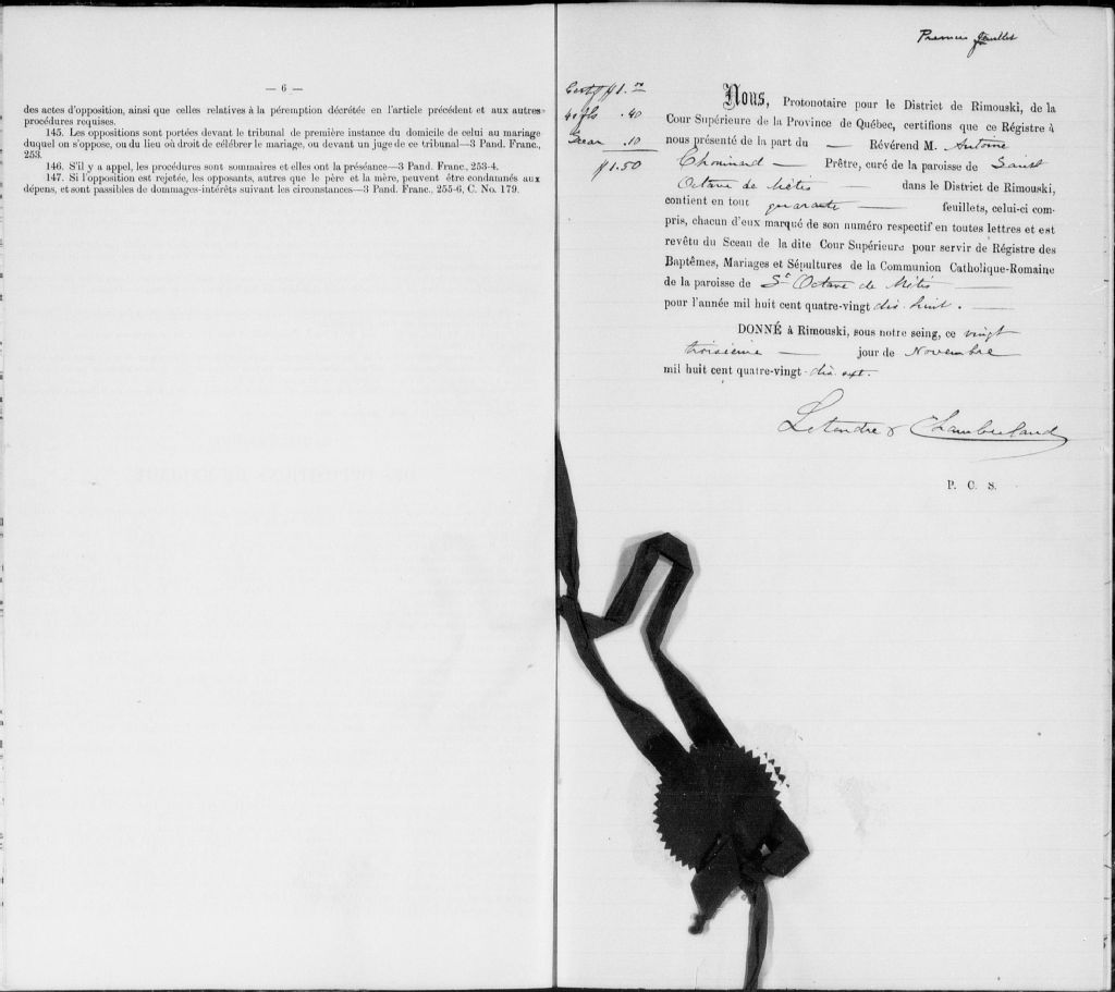 Saint-Octave-de-Métis, 1855-1921, Archives nationales à Rimouski, Fonds Cour supérieure. District judiciaire de Rimouski. État civil, (01R,CE101,S20).