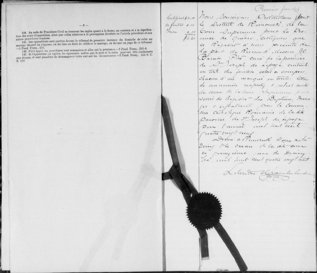 Saint-Joseph-de-Lepage, 1874-1921, Archives nationales à Rimouski, Fonds Cour supérieure. District judiciaire de Rimouski. État civil, (01R,CE101,S24).