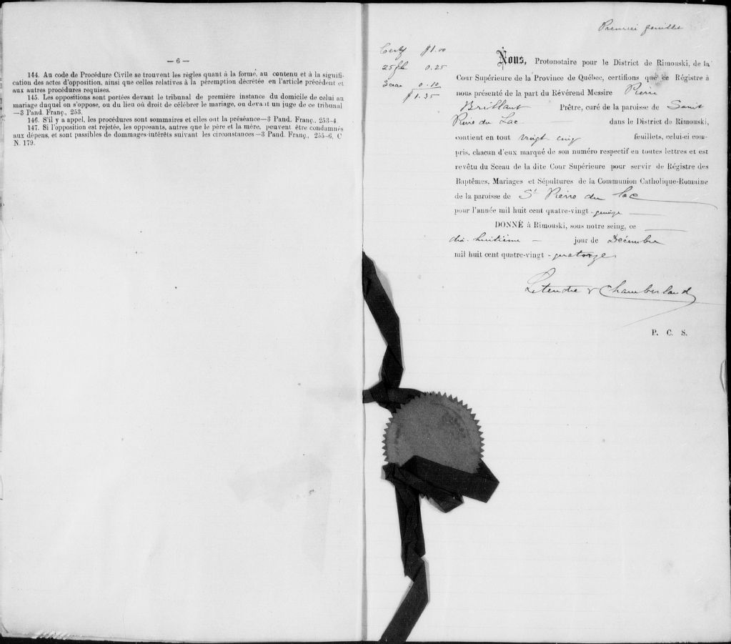 Saint-Pierre-du-Lac, 1884-1921, Archives nationales à Rimouski, Fonds Cour supérieure. District judiciaire de Rimouski. État civil, (01R,CE101,S27).
