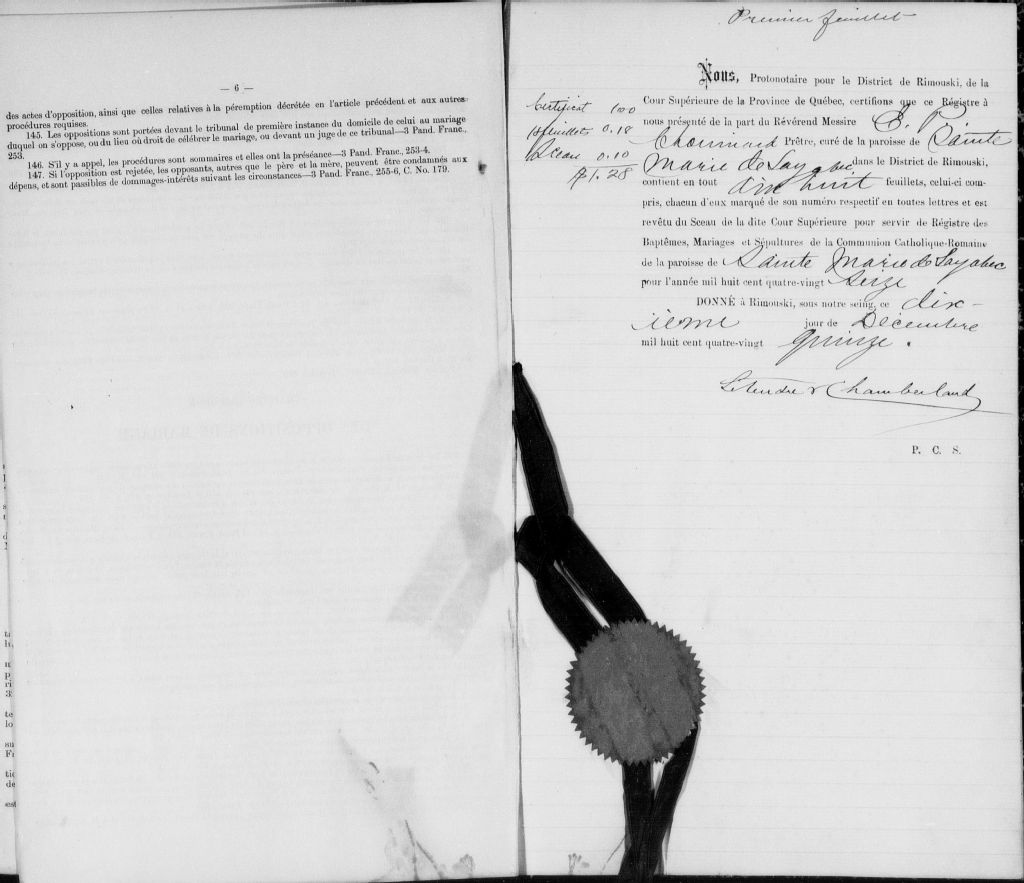 Saint-Nom-de-Marie de Sayabec, 1895-1921, Archives nationales à Rimouski, Fonds Cour supérieure. District judiciaire de Rimouski. État civil, (01R,CE101,S33).