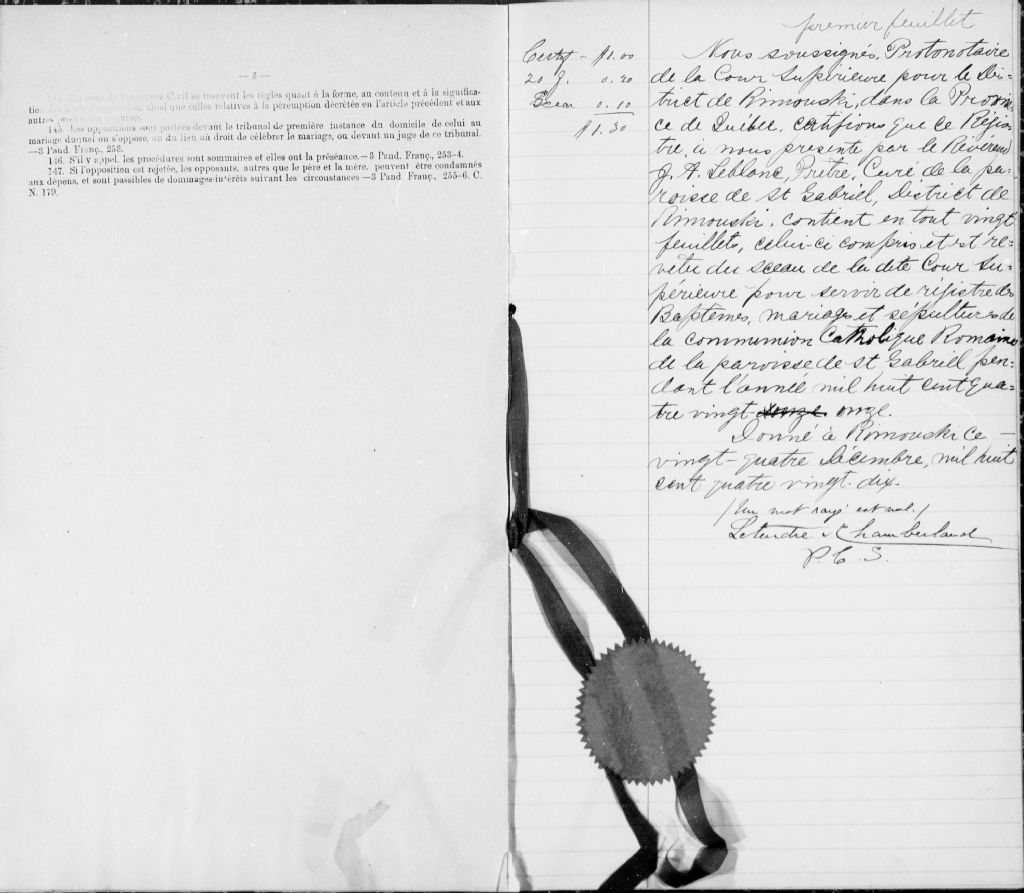 Saint-Gabriel, 1873-1921, Archives nationales à Rimouski, Fonds Cour supérieure. District judiciaire de Rimouski. État civil, (01R,CE101,S5).