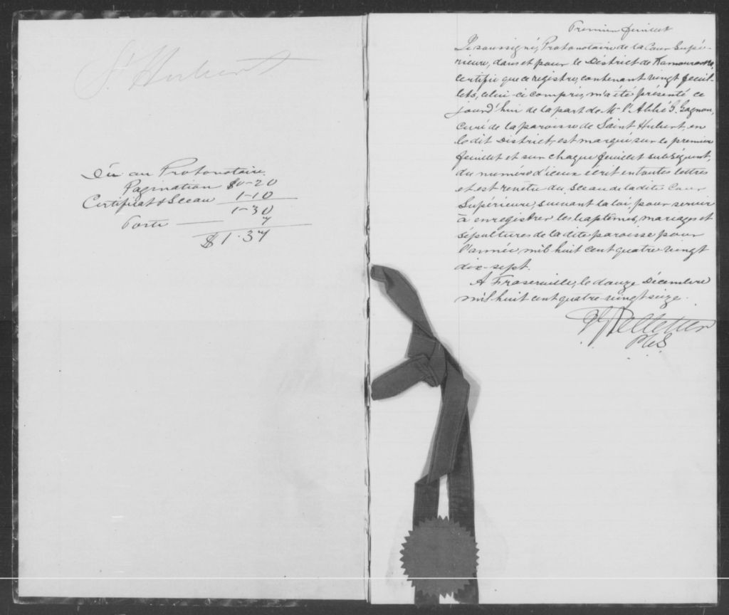 Saint-Hubert, 1886-1921, Archives nationales à Rimouski, Fonds Cour supérieure. District judiciaire de Kamouraska. État civil, (01R,CE104,S5).