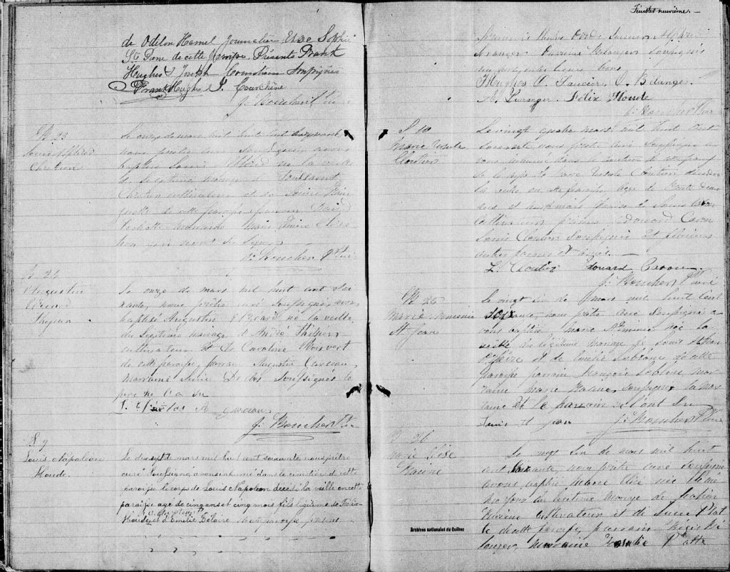 - Cette série regroupe les registres originaux de l'état civil, lesquels contiennent les enregistrements de baptêmes, de mariages et de sépultures consignés par le curé ou son représentant au cours de la période concernée par les documents.Outre les renseignements à caractère généalogique que nous pouvons y puiser, cette série peut constituer une source documentaire importante pour toute étude-statistique ou comparative sur les conditions de vie à différentes époques (mortalité infantile, espérance de vie) ou pour toute recherche portant sur l'occupation des terres (lieu de résidence), sur le mode de vie (métiers et professions, statut et âge des époux), sur les classes sociales (titres des parties impliquées, témoins/amis/parents présents lors d'un mariage), sur des évènements spéciaux (quelques mentions dans les sépultures) et sur des sujets à incidence médicale tels les maladies héréditaires (cause du décès)