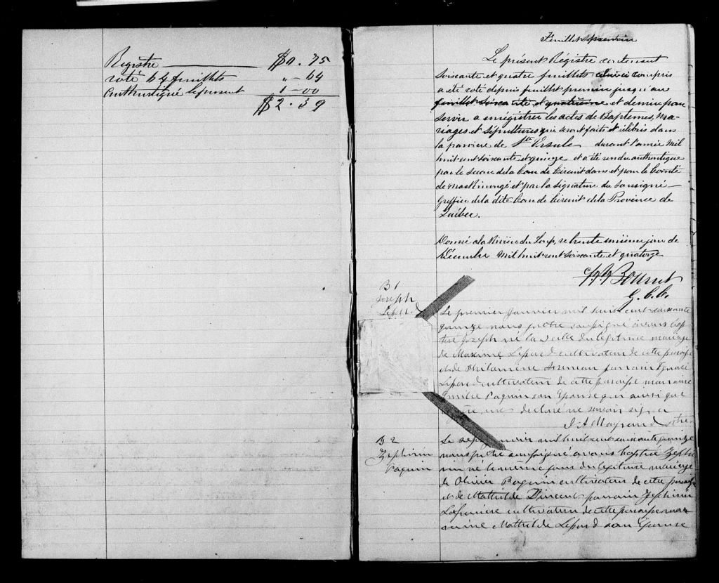 - Cette série regroupe les registres originaux de l'état civil, lesquels contiennent les enregistrements de baptêmes, de mariages et de sépultures consignés par le curé ou son représentant au cours de la période concernée par les documents.Outre les renseignements à caractère généalogique que nous pouvons y puiser, cette série peut constituer une source documentaire importante pour toute étude-statistique ou comparative sur les conditions de vie à différentes époques (mortalité infantile, espérance de vie) ou pour toute recherche portant sur l'occupation des terres (lieu de résidence), sur le mode de vie (métiers et professions, statut et âge des époux), sur les classes sociales (titres des parties impliquées, témoins/amis/parents présents lors d'un mariage), sur des évènements spéciaux (quelques mentions dans les sépultures) et sur des sujets à incidence médicale tels les maladies héréditaires (cause du décès)