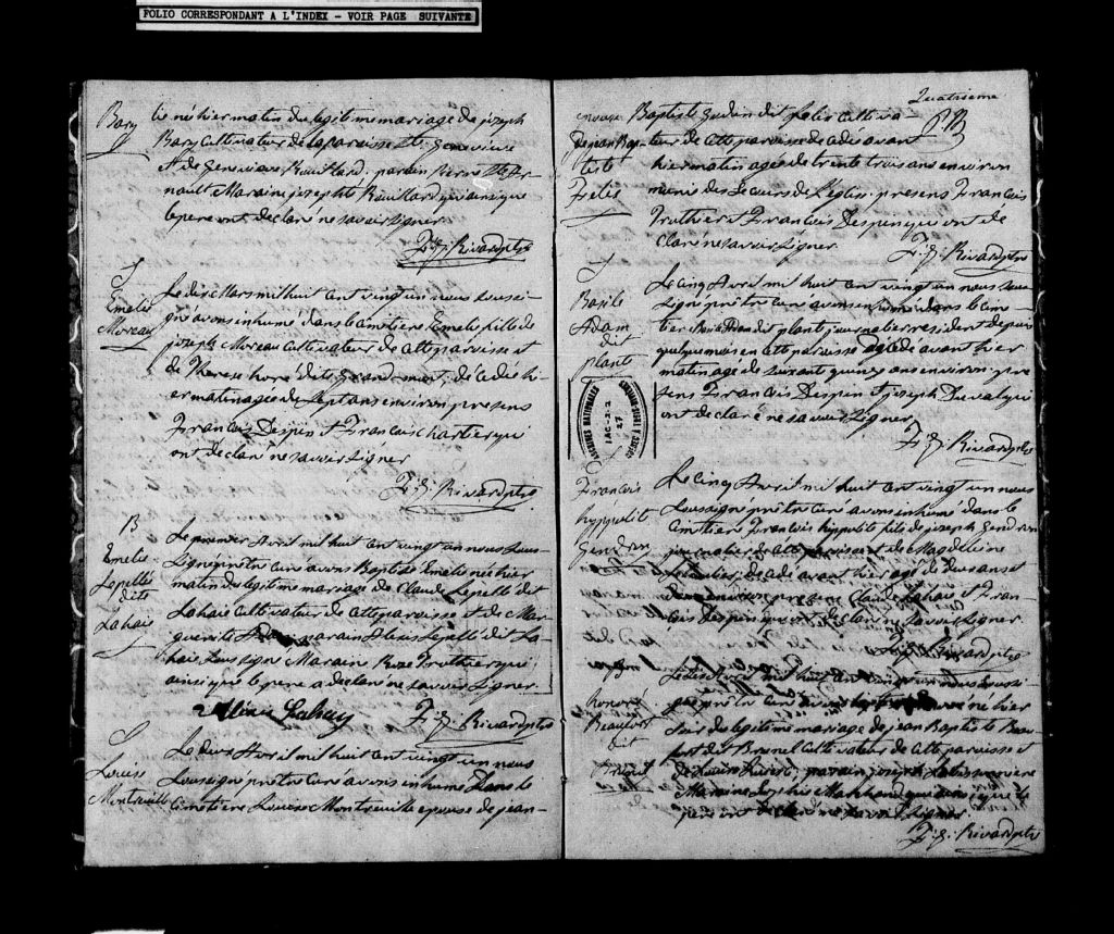 Cette série regroupe les registres (originaux et transcriptions) de l'état civil, lesquels contiennent les enregistrements de baptêmes, de mariages et de sépultures consignés par le curé ou son représentant, dont un cahier détaché du registre de Champlain (1679-1750) pour la période comprise entre le 26 février 1679 et le 21 septembre 1680; on y retrouve également les index originaux pertinents commençant en 1680 et produits sur une base annuelle à compter de 1695.Outre les renseignements à caractère généalogique que nous pouvons y puiser, cette série peut constituer une source documentaire importante pour toute étude-statistique ou comparative sur les conditions de vie à différentes époques (mortalité infantile, espérance de vie) ou pour toute recherche portant sur l'occupation des terres (lieu de résidence), sur le mode de vie (métiers et professions, statut et âge des époux), sur les classes sociales (titres des parties impliquées, [...]