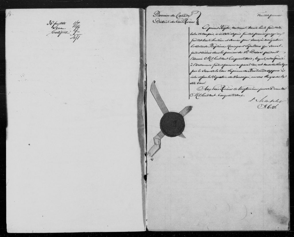 - Cette série regroupe les registres originaux de l'état civil, lesquels contiennent les enregistrements de baptêmes, de mariages et de sépultures consignés par le curé ou son représentant au cours de la période concernée par les documents.Outre les renseignements à caractère généalogique que nous pouvons y puiser, cette série peut constituer une source documentaire importante pour toute étude-statistique ou comparative sur les conditions de vie à différentes époques (mortalité infantile, espérance de vie) ou pour toute recherche portant sur l'occupation des terres (lieu de résidence), sur le mode de vie (métiers et professions, statut et âge des époux), sur les classes sociales (titres des parties impliquées, témoins/amis/parents présents lors d'un mariage), sur des évènements spéciaux (quelques mentions dans les sépultures) et sur des sujets à incidence médicale tels les maladies héréditaires (cause du décès)