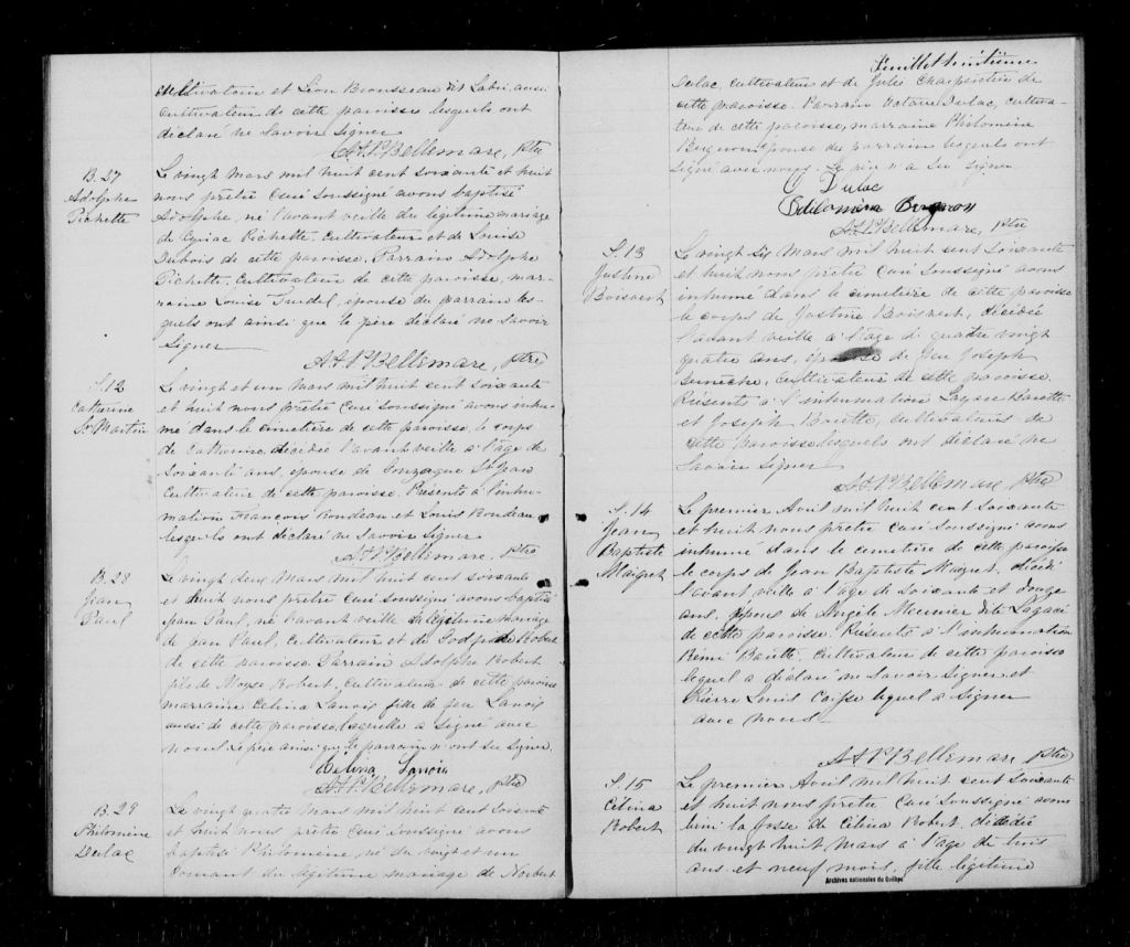 - Cette série regroupe les registres originaux de l'état civil, lesquels contiennent les enregistrements de baptêmes, de mariages et de sépultures consignés par le curé ou son représentant au cours de la période concernée par les documents.Outre les renseignements à caractère généalogique que nous pouvons y puiser, cette série peut constituer une source documentaire importante pour toute étude-statistique ou comparative sur les conditions de vie à différentes époques (mortalité infantile, espérance de vie) ou pour toute recherche portant sur l'occupation des terres (lieu de résidence), sur le mode de vie (métiers et professions, statut et âge des époux), sur les classes sociales (titres des parties impliquées, témoins/amis/parents présents lors d'un mariage), sur des évènements spéciaux (quelques mentions dans les sépultures) et sur des sujets à incidence médicale tels les maladies héréditaires (cause du décès)