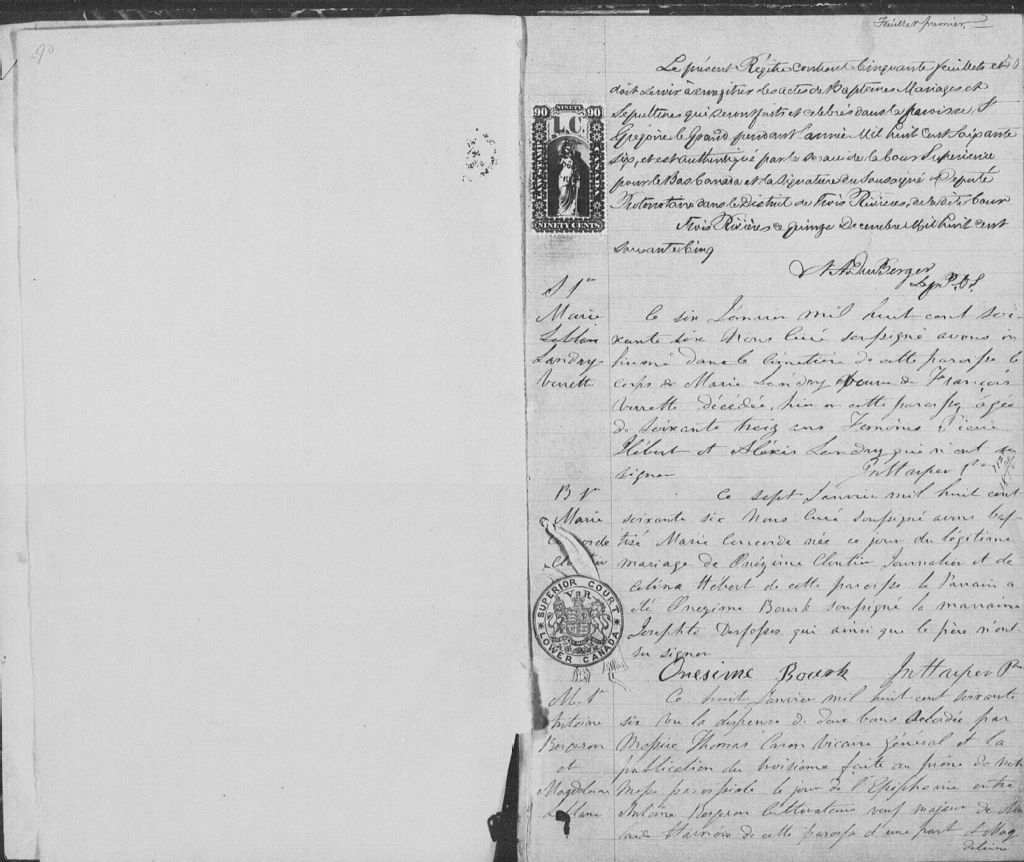 Saint-Grégoire-le-Grand, 1802-1920, Archives nationales à Trois-Rivières, Fonds Cour supérieure. District judiciaire de Trois-Rivières. État civil, (04T,CE401,S30).
