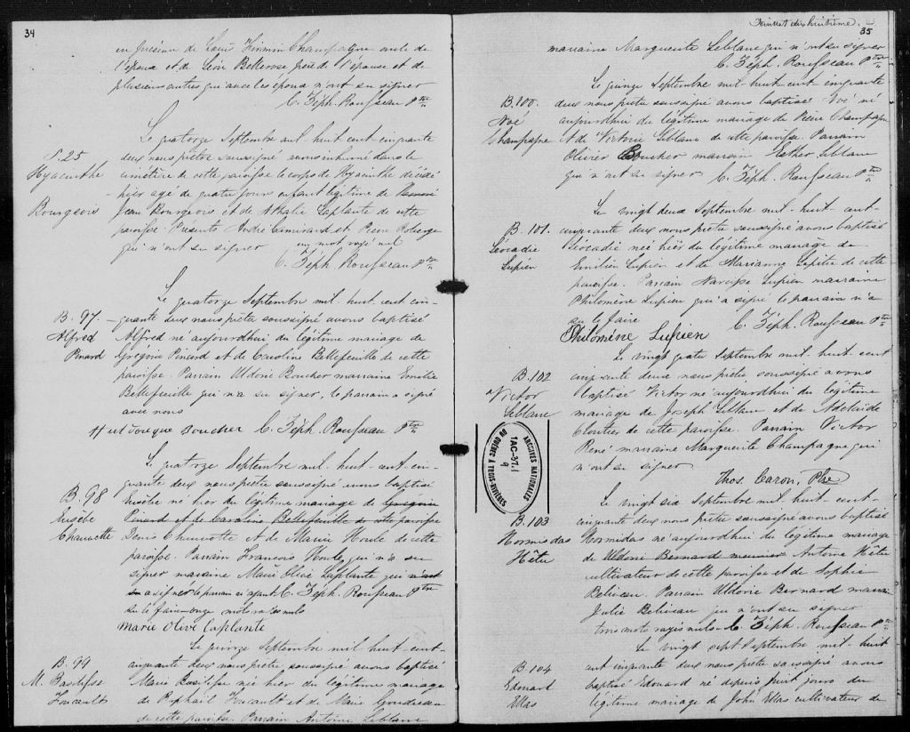 Sainte-Monique, 1844-1920, Archives nationales à Trois-Rivières, Fonds Cour supérieure. District judiciaire de Trois-Rivières. État civil, (04T,CE401,S37).