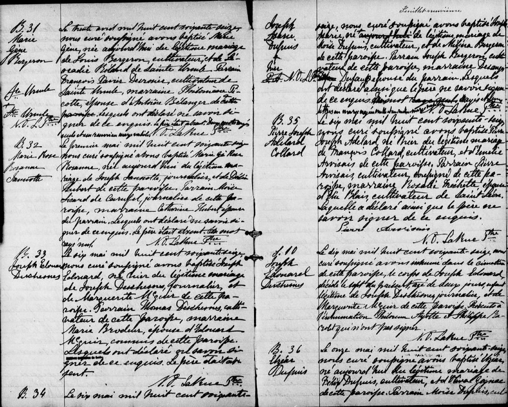 Saint-Paulin, 1850-1920, Archives nationales à Trois-Rivières, Fonds Cour supérieure. District judiciaire de Trois-Rivières. État civil, (04T,CE401,S39).