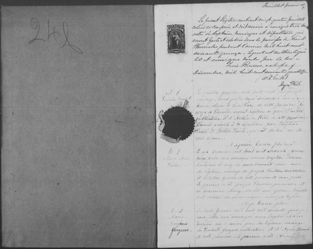 Saint-Wenceslas, 1869-1920, Archives nationales à Trois-Rivières, Fonds Cour supérieure. District judiciaire de Trois-Rivières. État civil, (04T,CE401,S45).