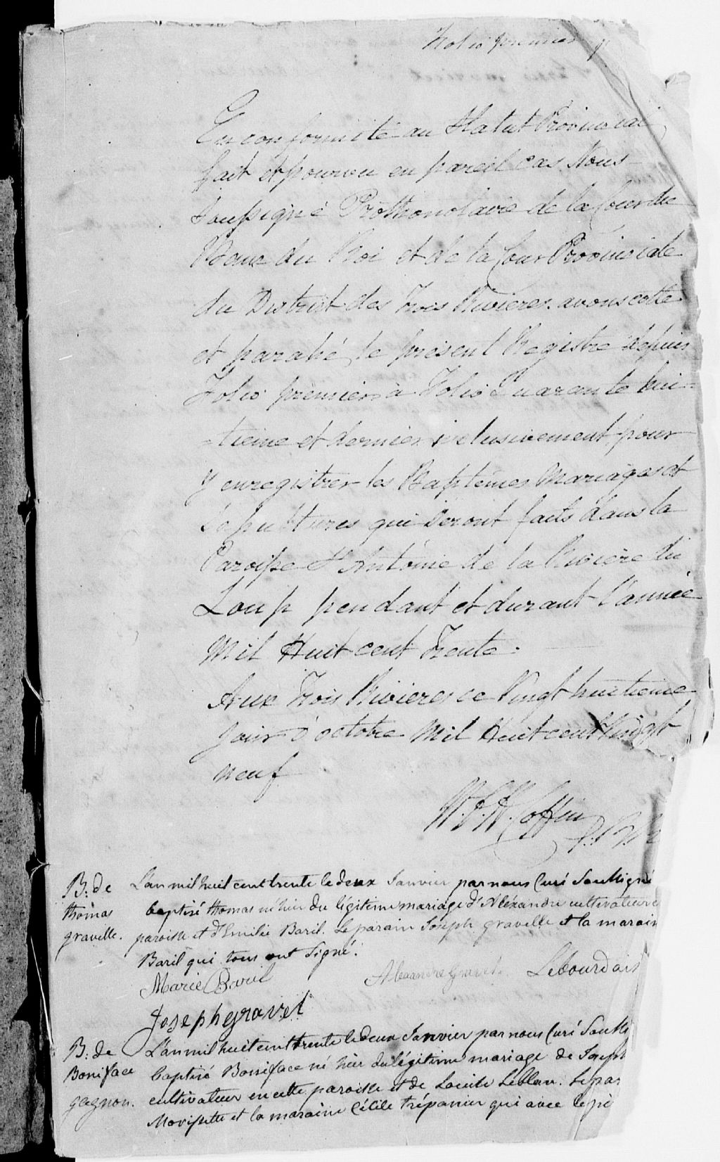 - Cette série regroupe les registres originaux de l'état civil, lesquels contiennent les enregistrements de baptêmes, de mariages et de sépultures consignés par le curé ou son représentant au cours de la période concernée par les documents.Outre les renseignements à caractère généalogique que nous pouvons y puiser, cette série peut constituer une source documentaire importante pour toute étude-statistique ou comparative sur les conditions de vie à différentes époques (mortalité infantile, espérance de vie) ou pour toute recherche portant sur l'occupation des terres (lieu de résidence), sur le mode de vie (métiers et professions, statut et âge des époux), sur les classes sociales (titres des parties impliquées, témoins/amis/parents présents lors d'un mariage), sur des évènements spéciaux (quelques mentions dans les sépultures) et sur des sujets à incidence médicale tels les maladies héréditaires (cause du décès)
