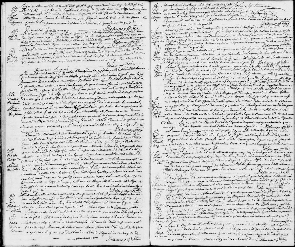 Cette série regroupe les registres originaux de l'état civil, lesquels contiennent les enregistrements de baptêmes, de mariages et de sépultures consignés par le curé ou son représentant au cours de la période concernée par les documents.Outre les renseignements à caractère généalogique que nous pouvons y puiser, cette série peut constituer une source documentaire importante pour toute étude-statistique ou comparative sur les conditions de vie à différentes époques (mortalité infantile, espérance de vie) ou pour toute recherche portant sur l'occupation des terres (lieu de résidence), sur le mode de vie (métiers et professions, statut et âge des époux), sur les classes sociales (titres des parties impliquées, témoins/amis/parents présents lors d'un mariage), sur des évènements spéciaux (quelques mentions dans les sépultures) et sur des sujets à incidence médicale tels les maladies héréditaires (cause du décès)