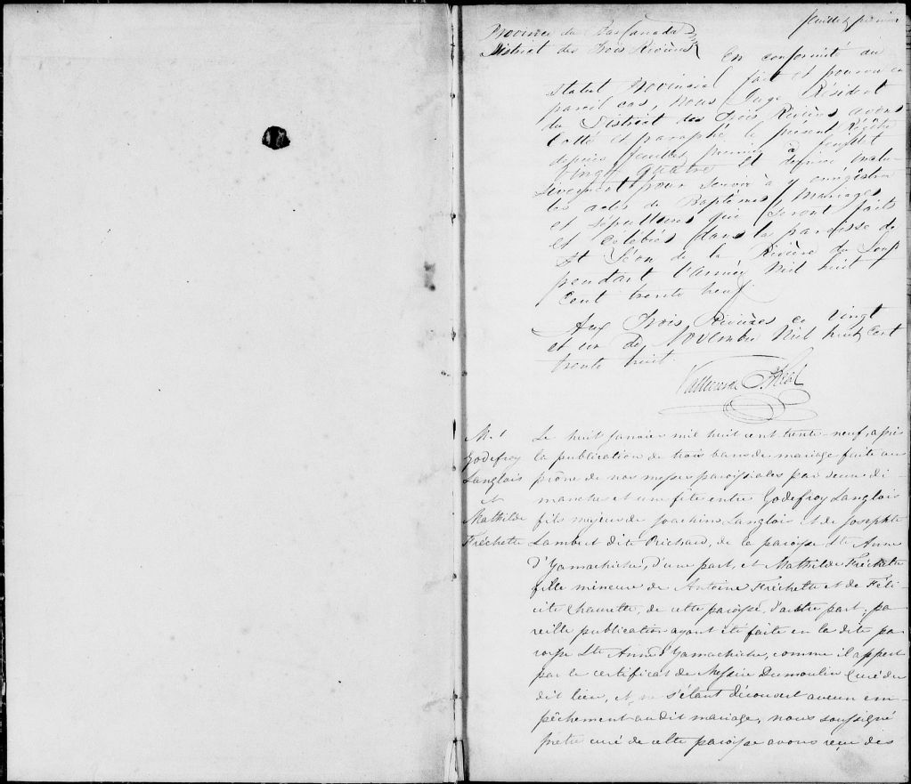 Saint-Léon-le-Grand, 1802-1920, Archives nationales à Trois-Rivières, Fonds Cour supérieure. District judiciaire de Trois-Rivières. État civil, (04T,CE401,S32).