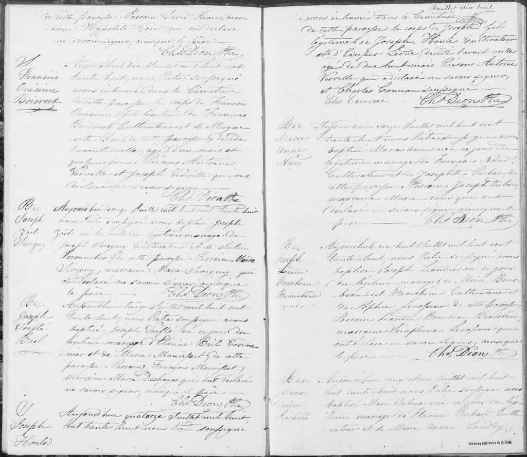 La Nativité-de-Notre-Dame-de-Bécancour, 1716-1920, Archives nationales à Trois-Rivières, Fonds Cour supérieure. District judiciaire de Trois-Rivières. État civil, (04T,CE401,S4).