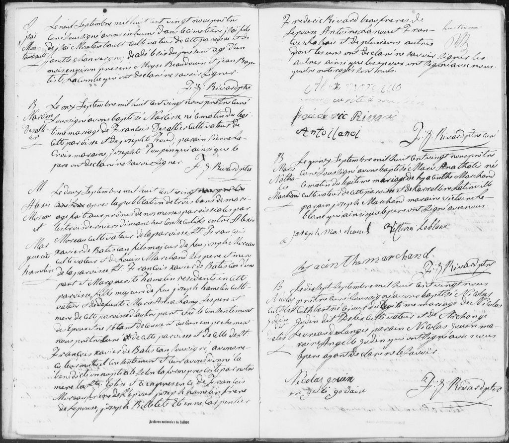 - Cette série regroupe les registres originaux de l'état civil, lesquels contiennent les enregistrements de baptêmes, de mariages et de sépultures consignés par le curé ou son représentant au cours de la période concernée par les documents.Outre les renseignements à caractère généalogique que nous pouvons y puiser, cette série peut constituer une source documentaire importante pour toute étude-statistique ou comparative sur les conditions de vie à différentes époques (mortalité infantile, espérance de vie) ou pour toute recherche portant sur l'occupation des terres (lieu de résidence), sur le mode de vie (métiers et professions, statut et âge des époux), sur les classes sociales (titres des parties impliquées, témoins/amis/parents présents lors d'un mariage), sur des évènements spéciaux (quelques mentions dans les sépultures) et sur des sujets à incidence médicale tels les maladies héréditaires (cause du décès).Cette série contient les [...]