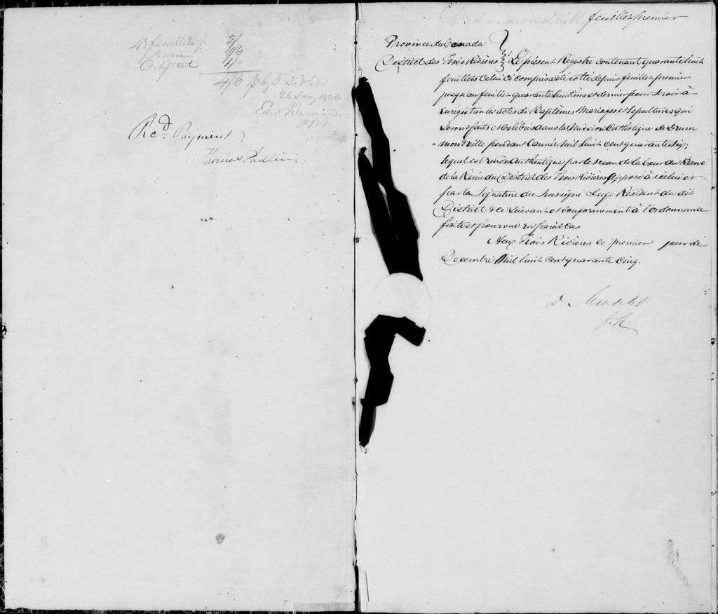Saint-Frédéric-de-Drummondville, 1817-1921, Archives nationales à Trois-Rivières, Fonds Cour supérieure. District judiciaire de Drummond. État civil, (04T,CE403,S8).