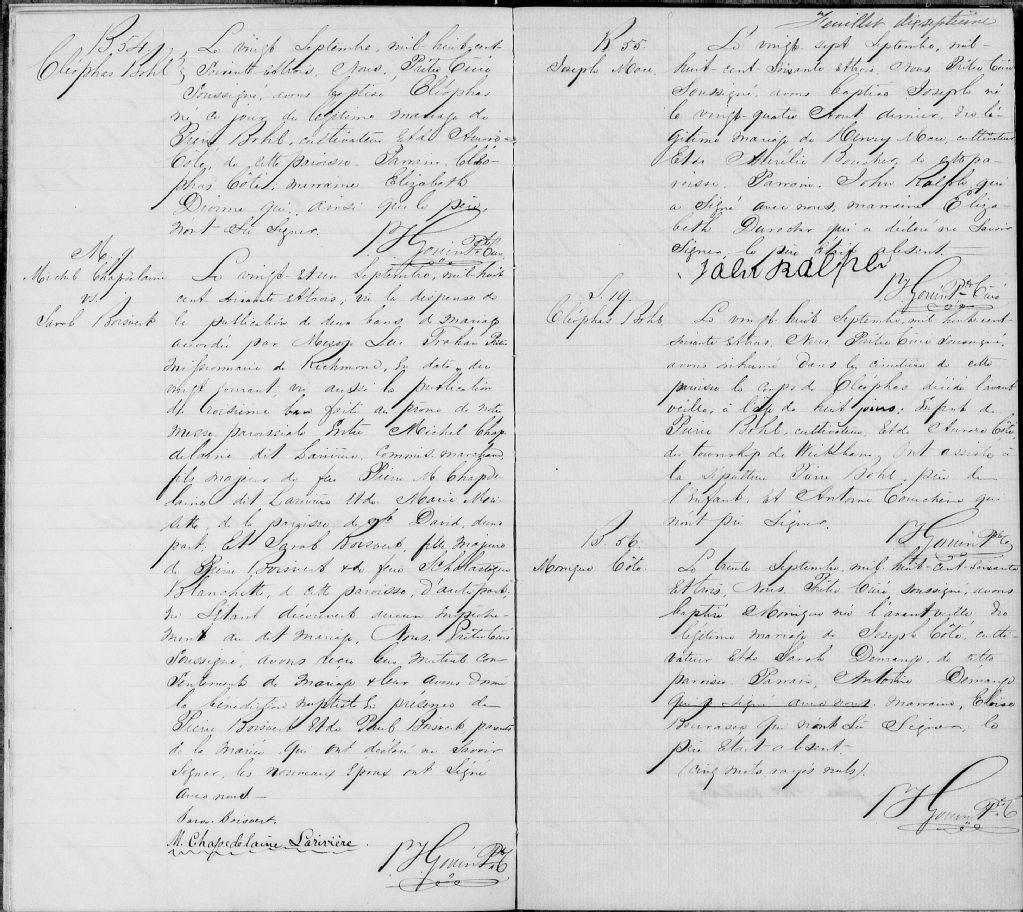 - Cette série regroupe les registres originaux de l'état civil, lesquels contiennent les enregistrements de baptêmes, de mariages et de sépultures consignés par le curé ou son représentant au cours de la période concernée par les documents.Outre les renseignements à caractère généalogique que nous pouvons y puiser, cette série peut constituer une source documentaire importante pour toute étude-statistique ou comparative sur les conditions de vie à différentes époques (mortalité infantile, espérance de vie) ou pour toute recherche portant sur l'occupation des terres (lieu de résidence), sur le mode de vie (métiers et professions, statut et âge des époux), sur les classes sociales (titres des parties impliquées, témoins/amis/parents présents lors d'un mariage), sur des évènements spéciaux (quelques mentions dans les sépultures) et sur des sujets à incidence médicale tels les maladies héréditaires (cause du décès)