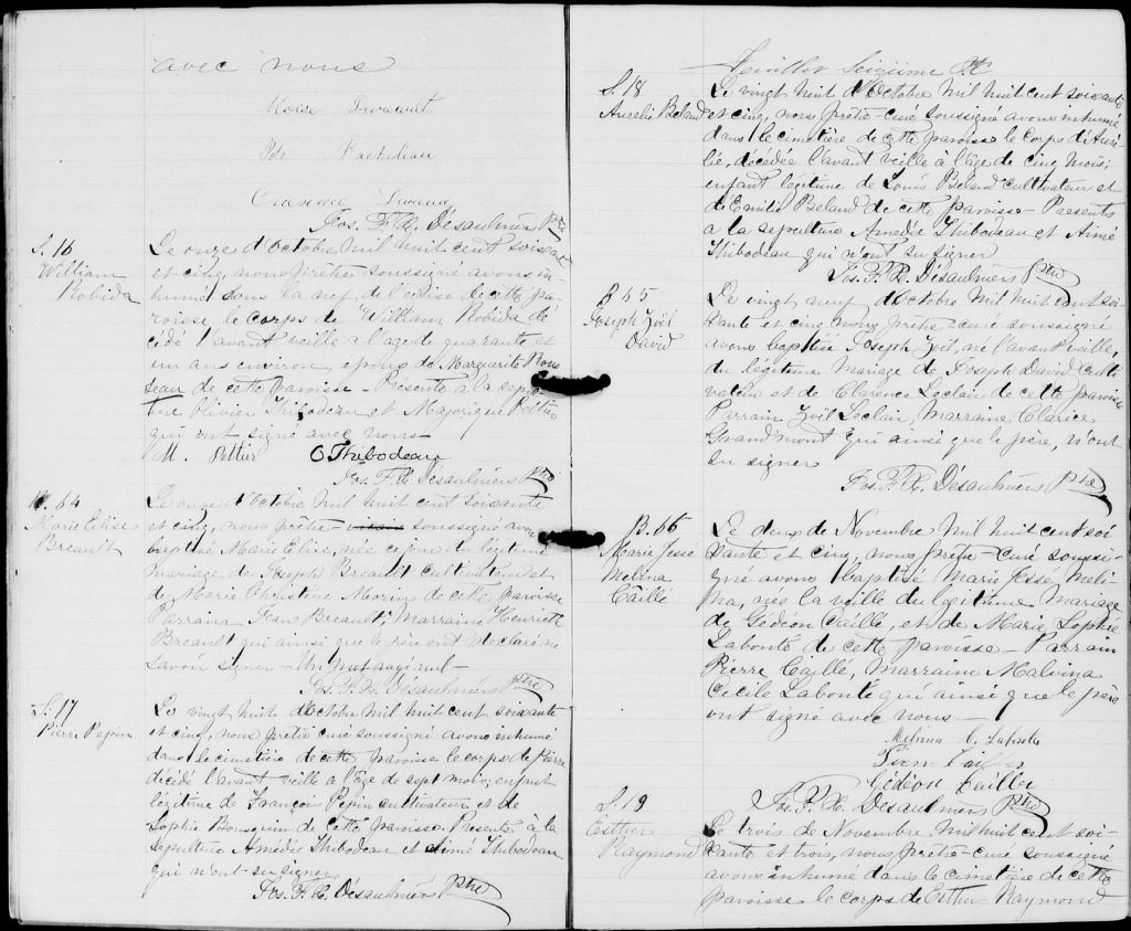 Saint-Félix-de-Kingsey, 1842-1921, Archives nationales à Trois-Rivières, Fonds Cour supérieure. District judiciaire de Drummond. État civil, (04T,CE403,S7).