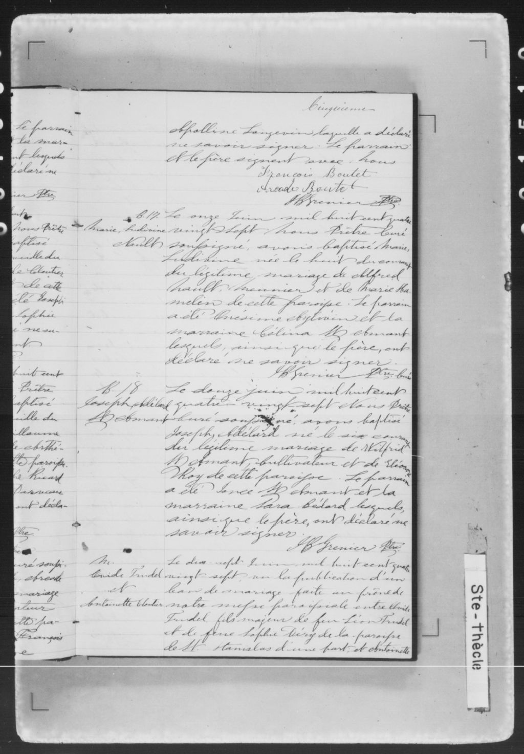 Sainte-Thècle, 1880-1920, Archives nationales à Trois-Rivières, Fonds Cour supérieure. District judiciaire de Saint-Maurice. État civil, (04T,CE404,S9).
