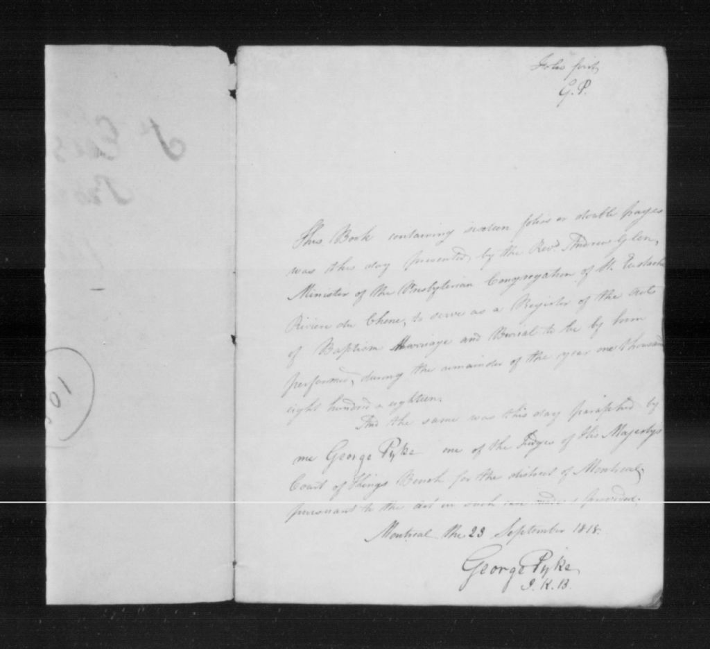 St. Eustache Presbyterian Church, 1818-1856, Archives nationales à Montréal, Fonds Cour supérieure. District judiciaire de Terrebonne. État civil, (06M,CE606,S63).