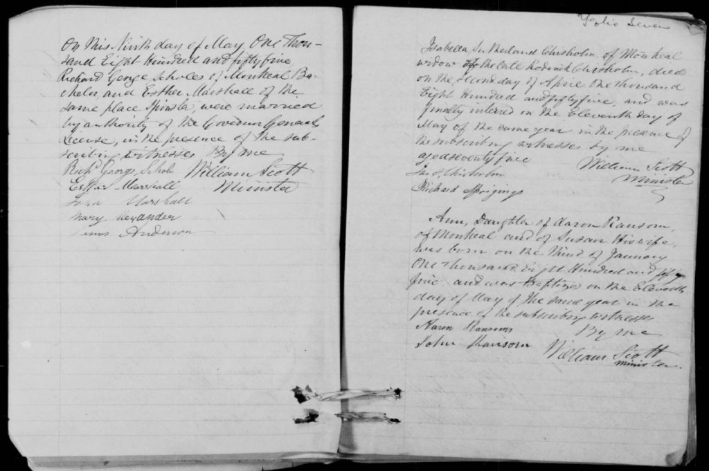 St. James's Methodist Church, 1818-1923, Archives nationales à Montréal, Fonds Cour supérieure. District judiciaire de Montréal. État civil, (06M,CE601,S109).