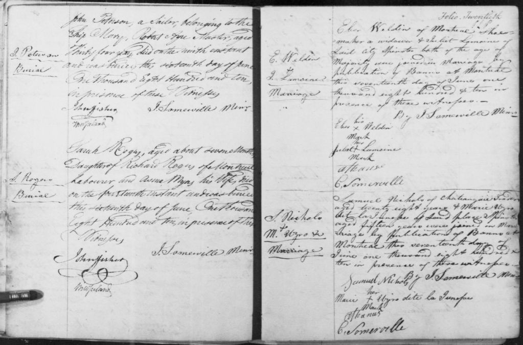 St. Gabriel Street Presbyterian Church, 1779-1909, Archives nationales à Montréal, Fonds Cour supérieure. District judiciaire de Montréal. État civil, (06M,CE601,S126).