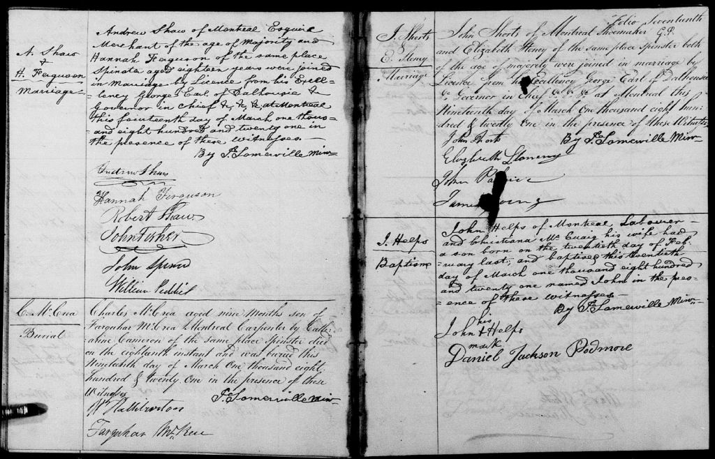 St. Gabriel Street Presbyterian Church, 1779-1909, Archives nationales à Montréal, Fonds Cour supérieure. District judiciaire de Montréal. État civil, (06M,CE601,S126).