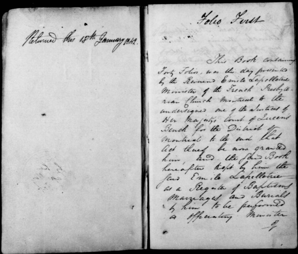 St. John's Presbyterian Church, 1841-1870, 1879-1899, Archives nationales à Montréal, Fonds Cour supérieure. District judiciaire de Montréal. État civil, (06M,CE601,S127).