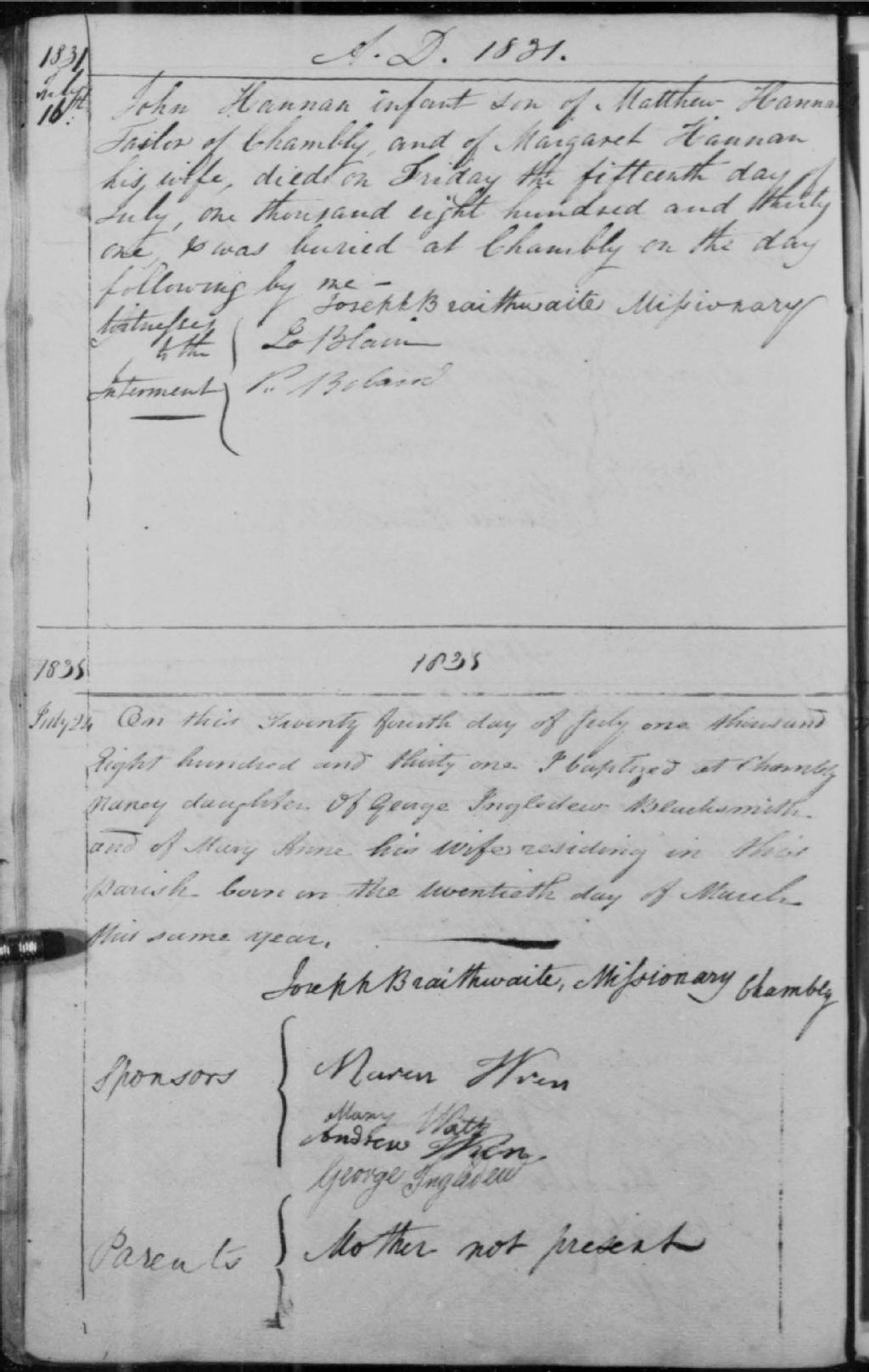 St. Stephen's Anglican Church of Chambly, 1819-1922, Archives nationales à Montréal, Fonds Cour supérieure. District judiciaire de Montréal. État civil, (06M,CE601,S79).