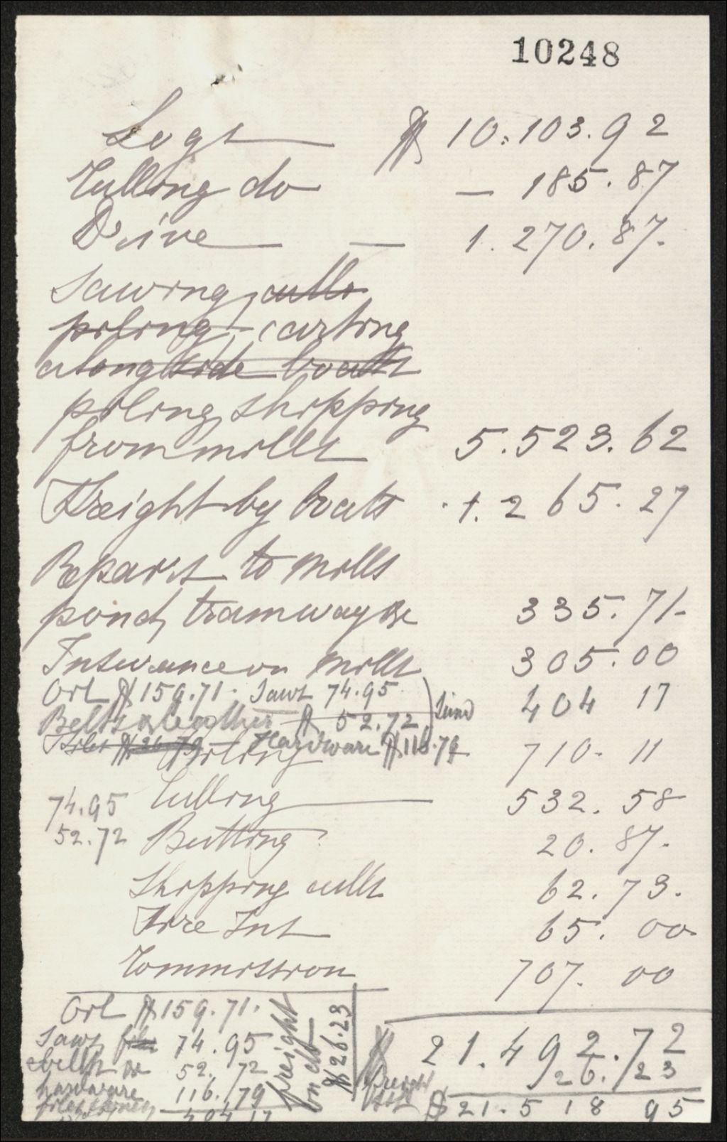 Notes de Henri-Gustave Joly sur les dépenses concernant le commerce du bois
