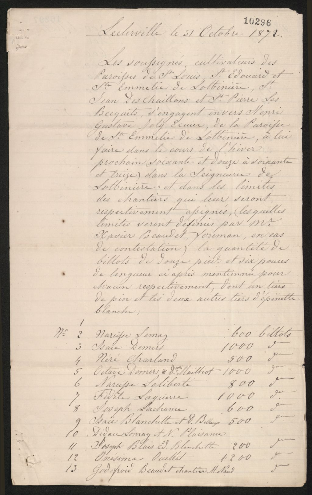 - Contrat de billots