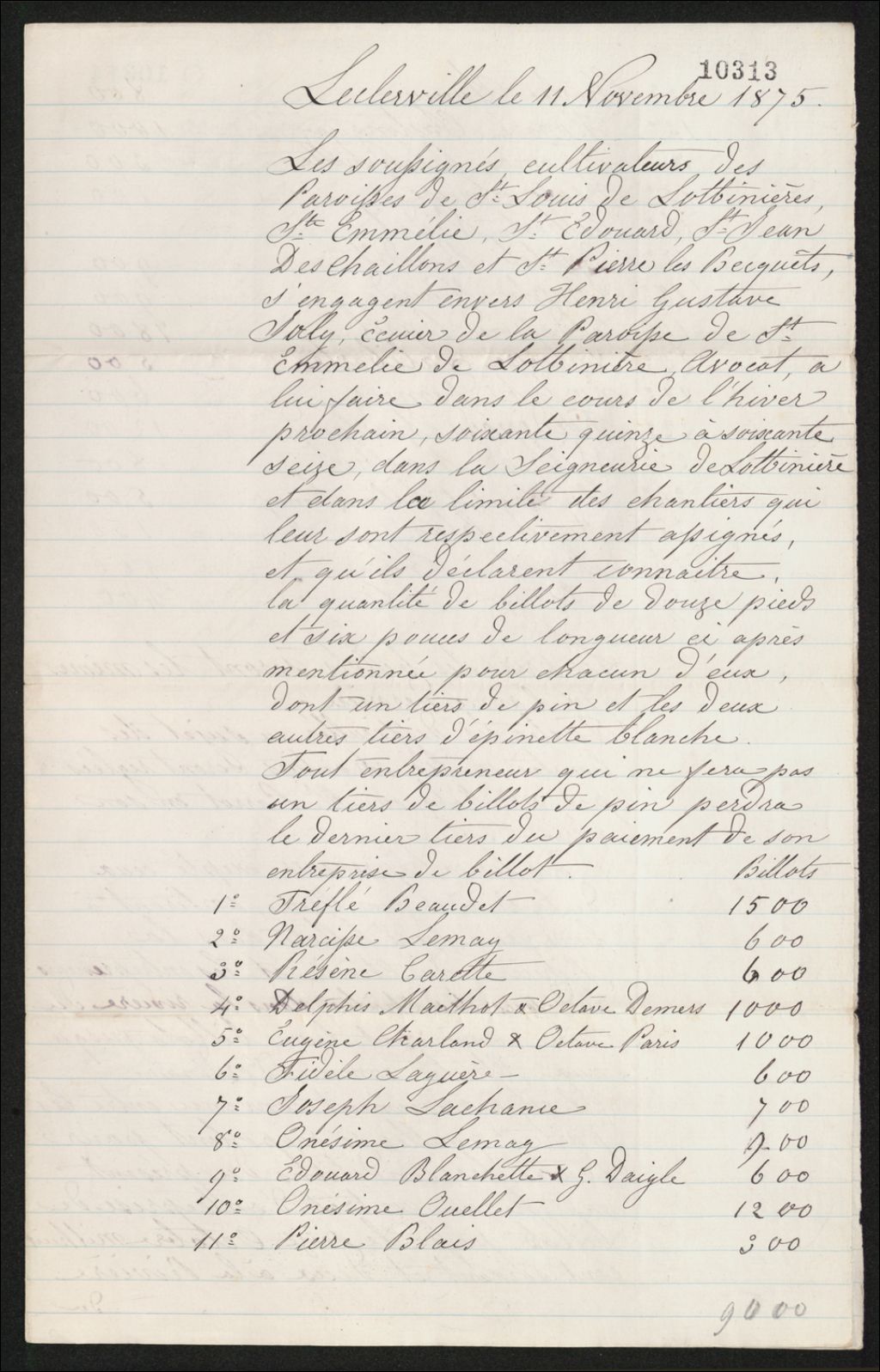 - Contrat de billots