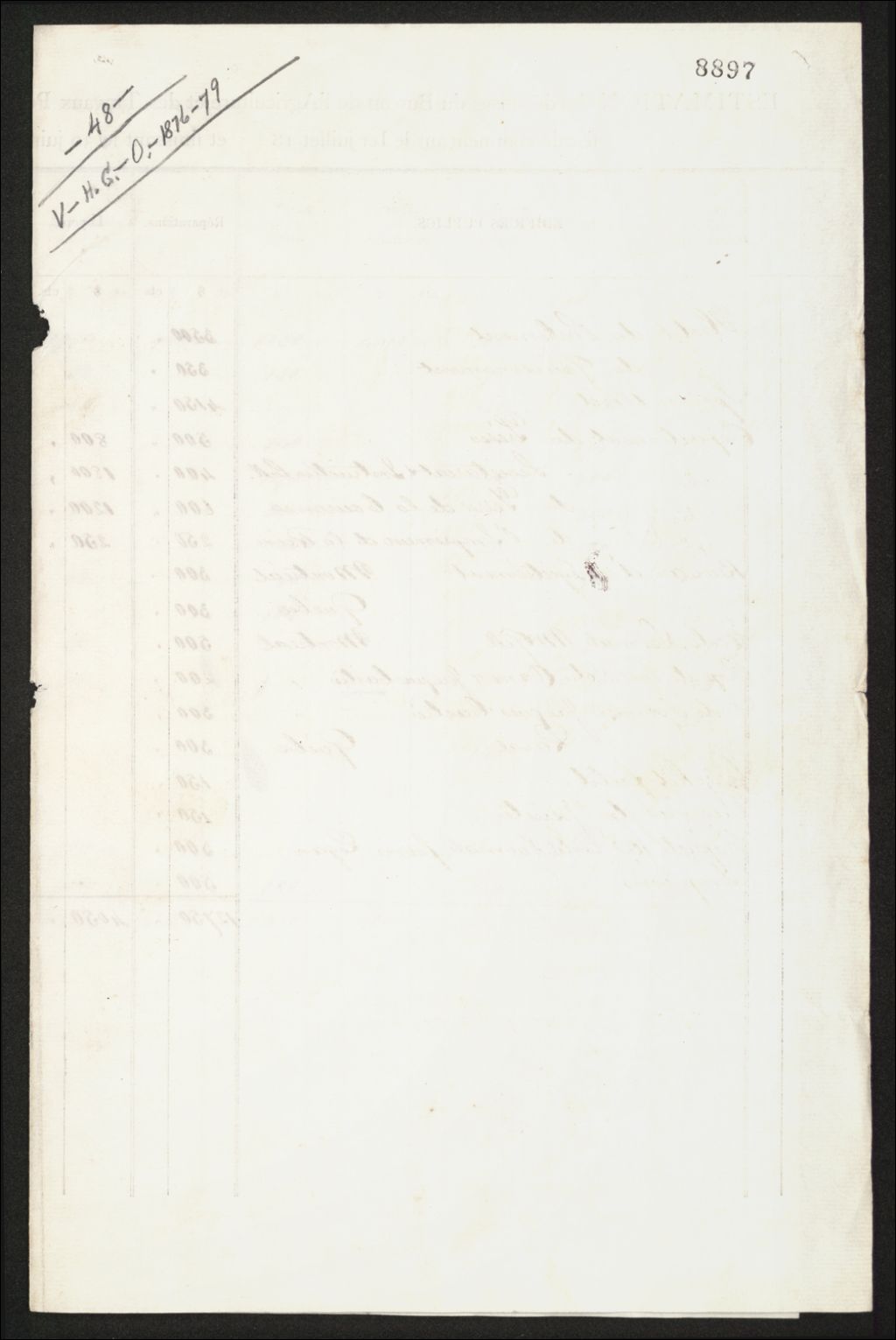 - Estimations des dépenses du bureau de l'Agriculture et des Travaux Publics, pour réparations et entretien des édifices publics, environ 1879-1880
