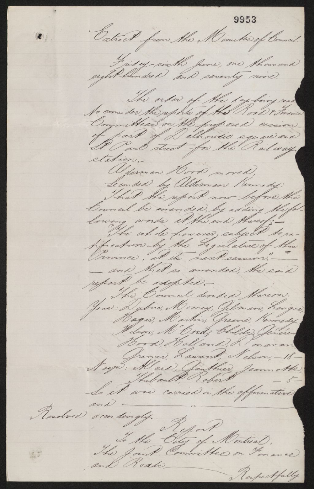 Extrait des minutes du conseil de ville de Montréal
