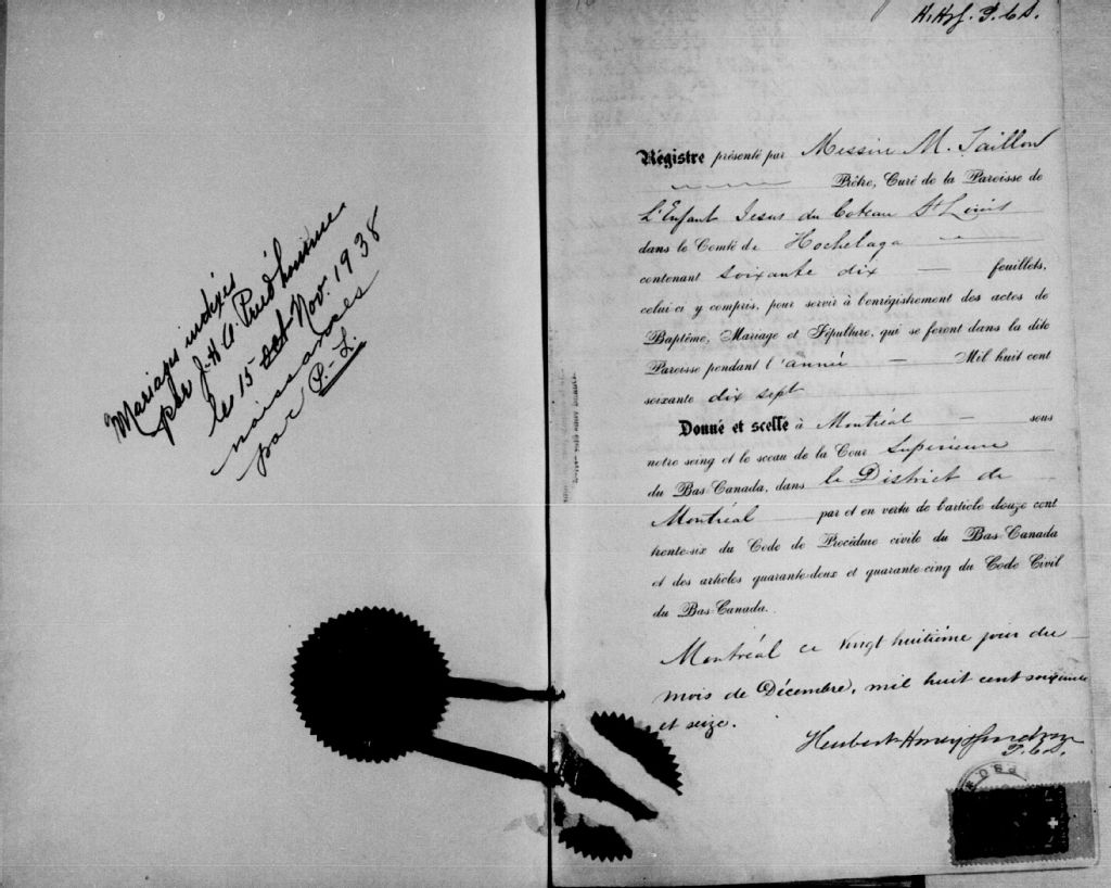 Saint-Enfant-Jésus, 1864-1922, Archives nationales à Montréal, Fonds Cour supérieure. District judiciaire de Montréal. État civil, (06M,CE601,S21).