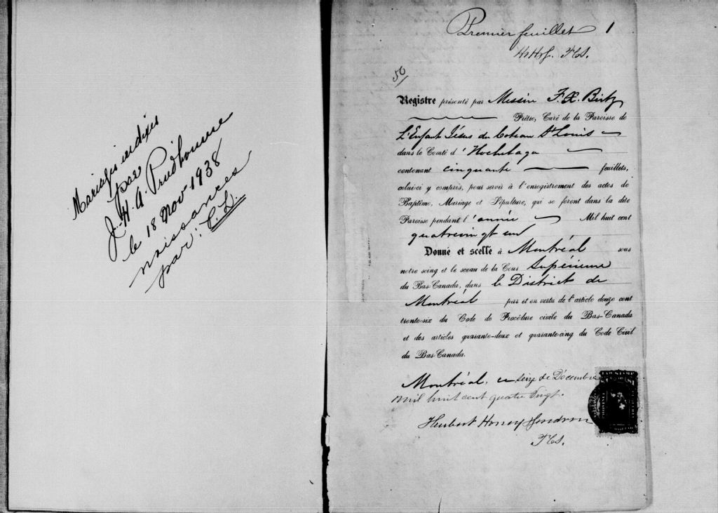 Saint-Enfant-Jésus, 1864-1922, Archives nationales à Montréal, Fonds Cour supérieure. District judiciaire de Montréal. État civil, (06M,CE601,S21).