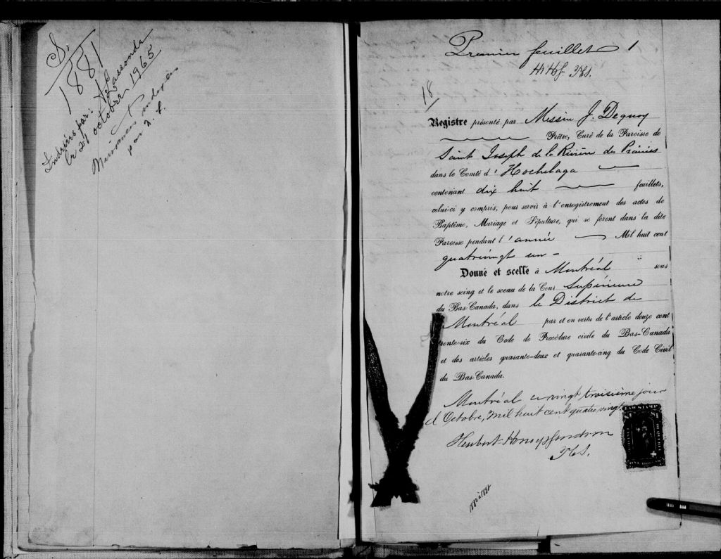 Saint-Joseph-de-la-Rivière-des-Prairies, 1687-1922, Archives nationales à Montréal, Fonds Cour supérieure. District judiciaire de Montréal. État civil, (06M,CE601,S40).