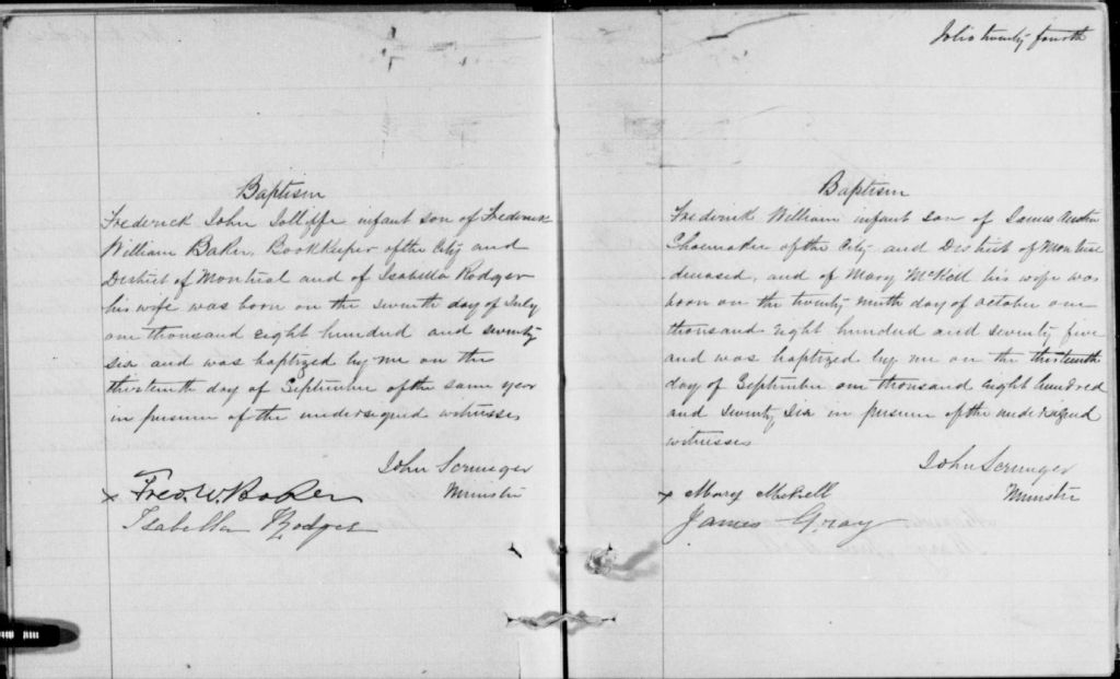 Calvin Presbyterian Church, 1863-1922, Archives nationales à Montréal, Fonds Cour supérieure. District judiciaire de Montréal. État civil, (06M,CE601,S116).