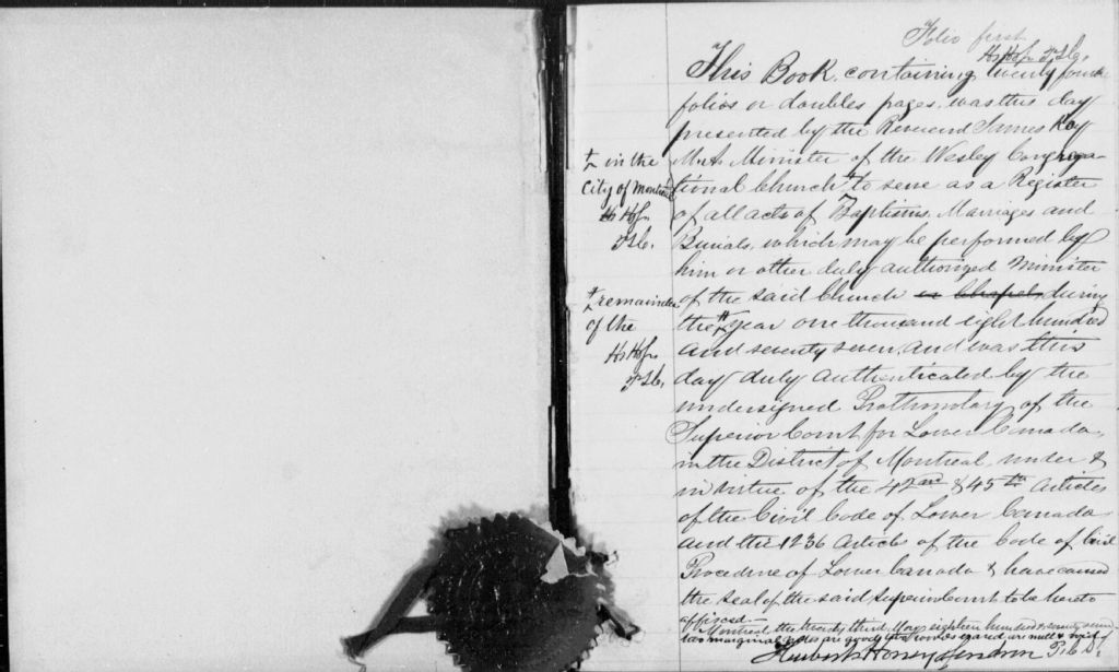Wesley Congregational Church, 1877-1882, Archives nationales à Montréal, Fonds Cour supérieure. District judiciaire de Montréal. État civil, (06M,CE601,S150).