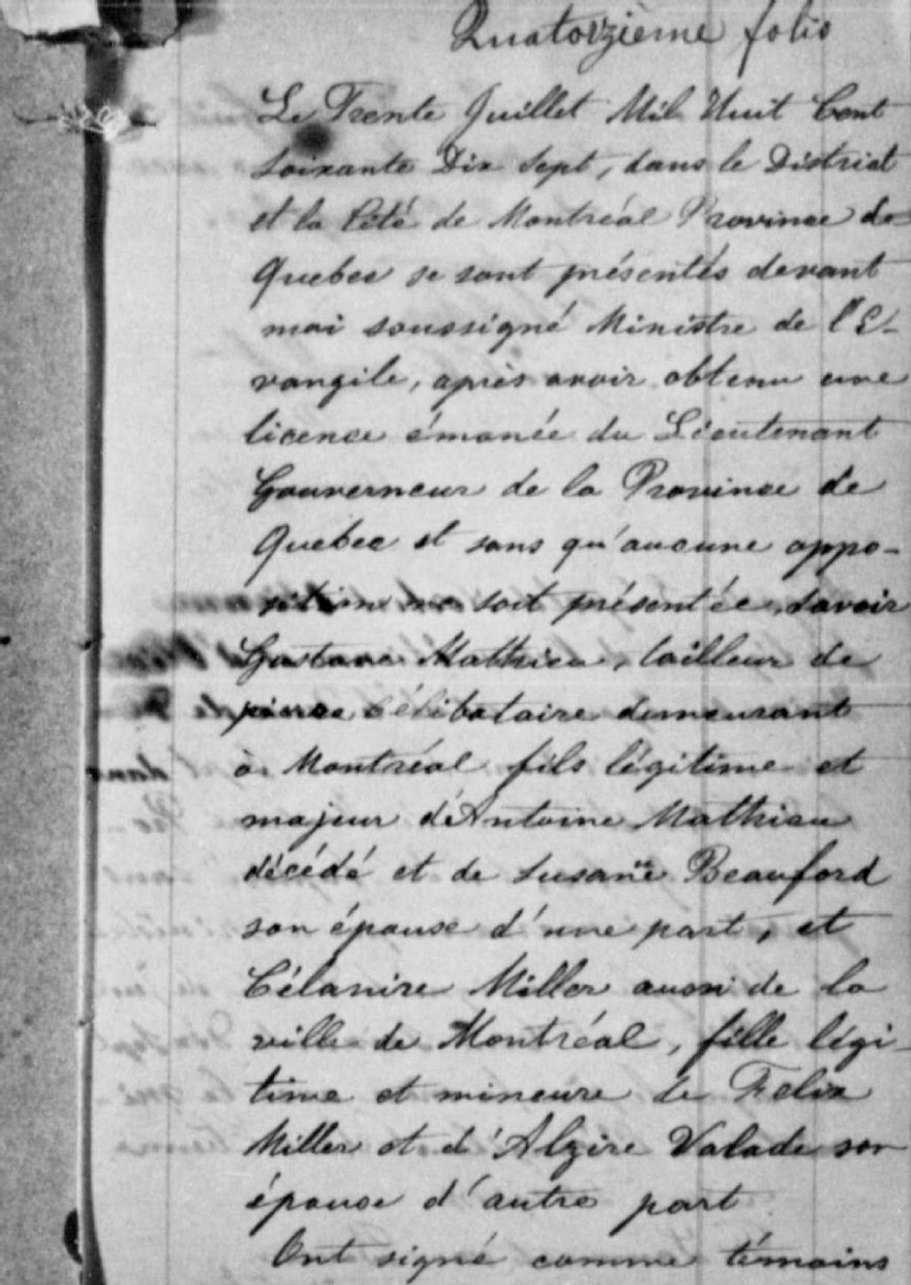 Église évangélique française de Montréal, 1845-1877, Archives nationales à Montréal, Fonds Cour supérieure. District judiciaire de Montréal. État civil, (06M,CE601,S92).
